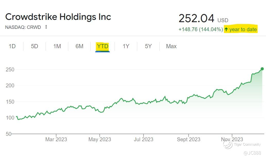 Crowdstrike is basking in a 144.04% YTD gain.
