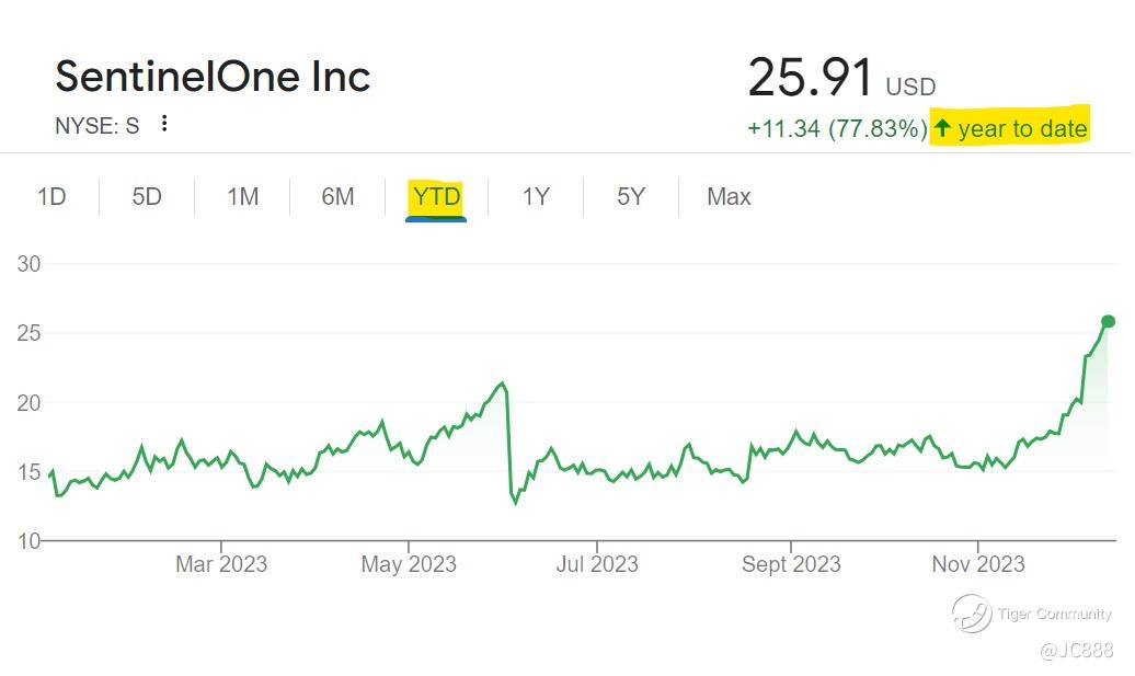 SentinelOne has gained +77.83% YTD gain.