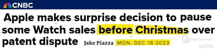 $Apple(AAPL)$ has informed that they will be holding back sales on the latest 2 versions of Apple watches - Series 9 & Ultra 2, that have a Blood Oxygen feature.