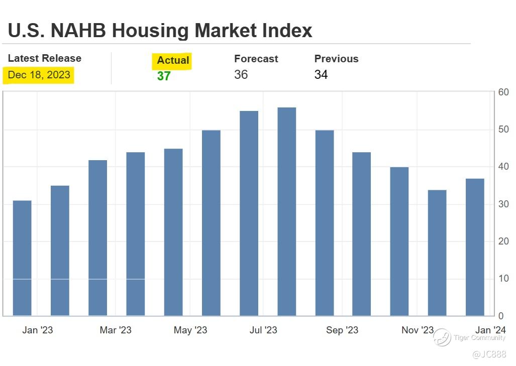 Monday also saw the released of the National Association of Home Builders (NAHB) Housing Market index (HMI) report for December 2023. (see above)