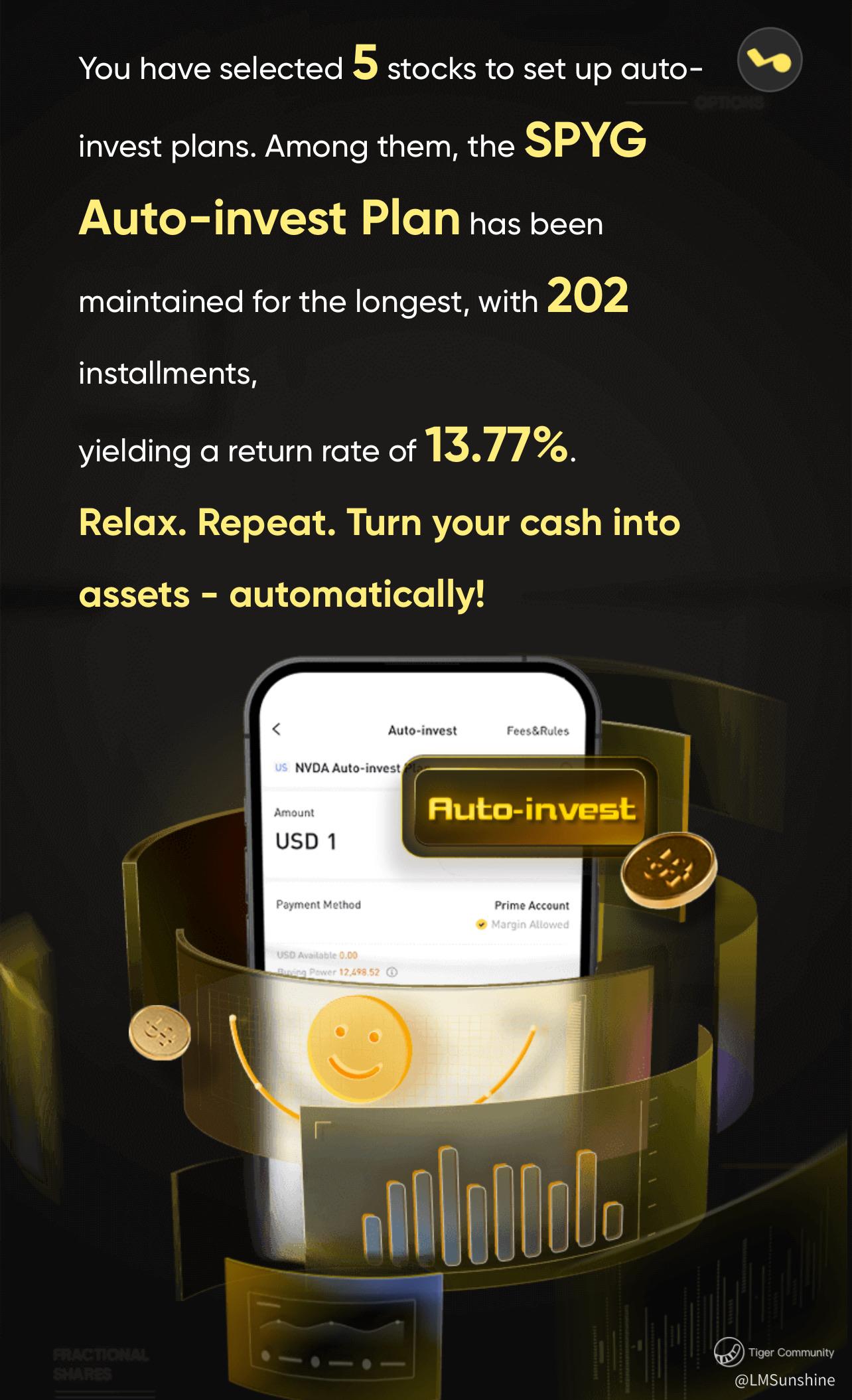 The BIGGEST highlight for me in 2023 was to use 🐯 Auto-Invest feature. There were a few stocks & ETFs I was interested in but didn’t have ⏰ to follow the price movements closely so I put them on a daily auto-invest plan after much research. These are how my auto-invest have been performing from highest to lowest profitability😉 The thing to celebrate about is that all my 5 auto-invest plans are in the green🥳🥳🥳