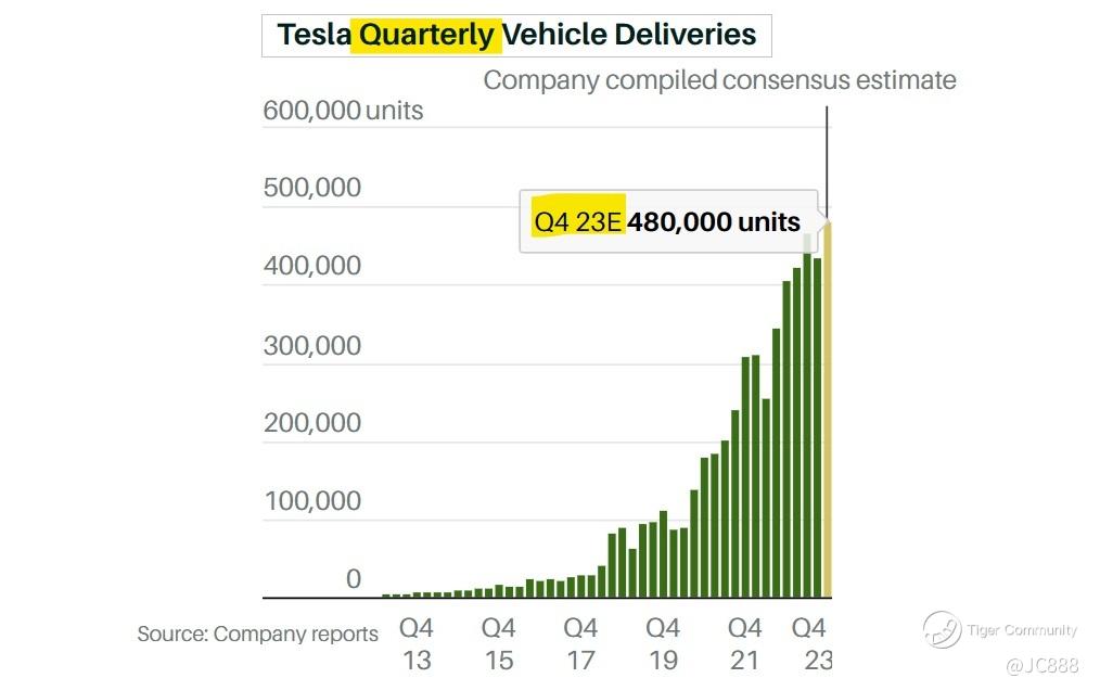 $Tesla Motors(TSLA)$ will be announcing its Q4 2023 deliveries on Tue, 02 Jan 2024.