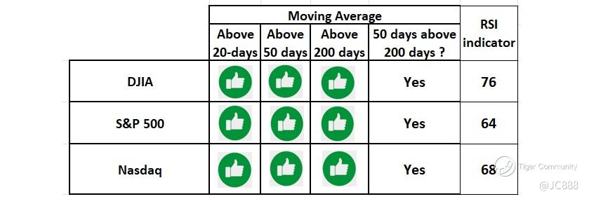 Looking at the Composite indexes’ moving average, they are still “healthy”: (see below)