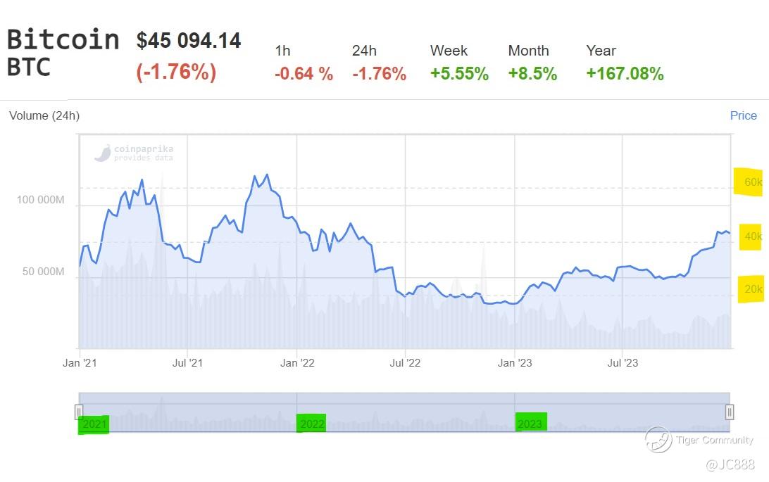 Above is Bitcoin’s 3 years chart - Jan 2021 to Jan 2024.