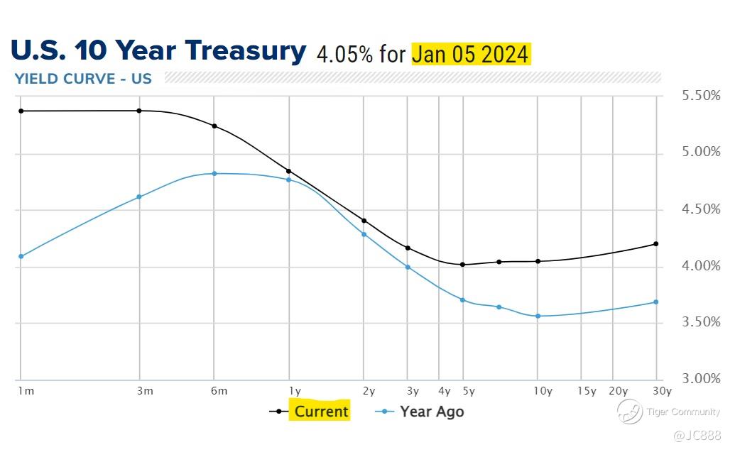 With a rise in the US 10-year Treasury yield back to 4.05% (on Fri, 05 Jan 2024), this would likely put downward pressure on the US stock market and complicate the Fed's rate-cutting plans. (see below)