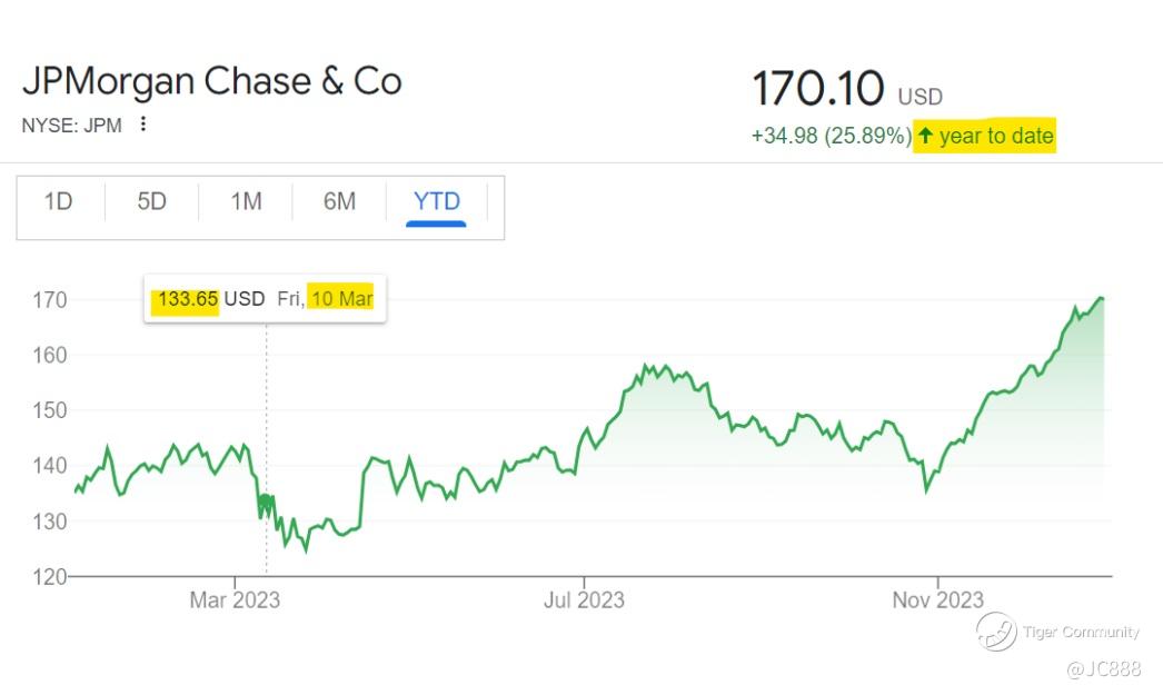 On 10 March 2023 when SVB was officially shutdown by regulators, JP Morgan was at $133.65.