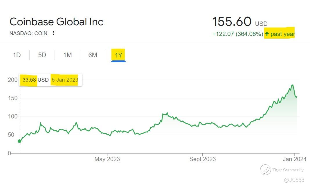 COIN bottomed on 05 Jan 2023 at $33.53 per share.