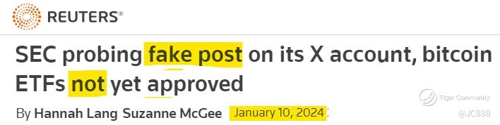 On Tue, 09 Jan 2024, the Securities and Exchange Commission (SEC) said someone briefly accessed its X social media account and posted a fake message saying it had approved Bitcoin spot ETF.