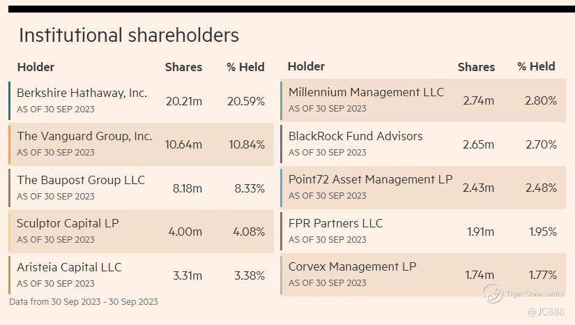 Collectively, these Top 10 institutional investors owns almost 60% of Liberty Media.