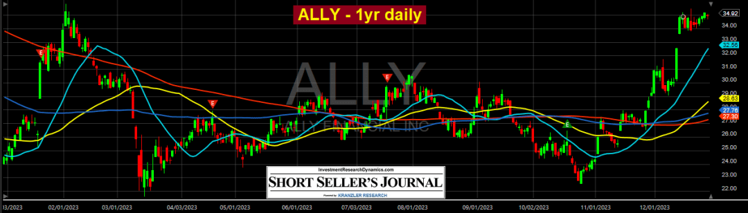 Recall that ALLY was formerly GMAC (the auto finance arm of General Motors). While Obama bailed out GM, GMAC went into Government receivership. It was eventually "sterilized" with Fed and taxpayer funds and IPO'd as ALLY in 2014. Given the subprime credit quality of over one-third of its auto loans, I think it's a good bet that ALLY goes "chapter 22" sometime in the next 2 years, barring a Fed and taxpayer-funded bailout.