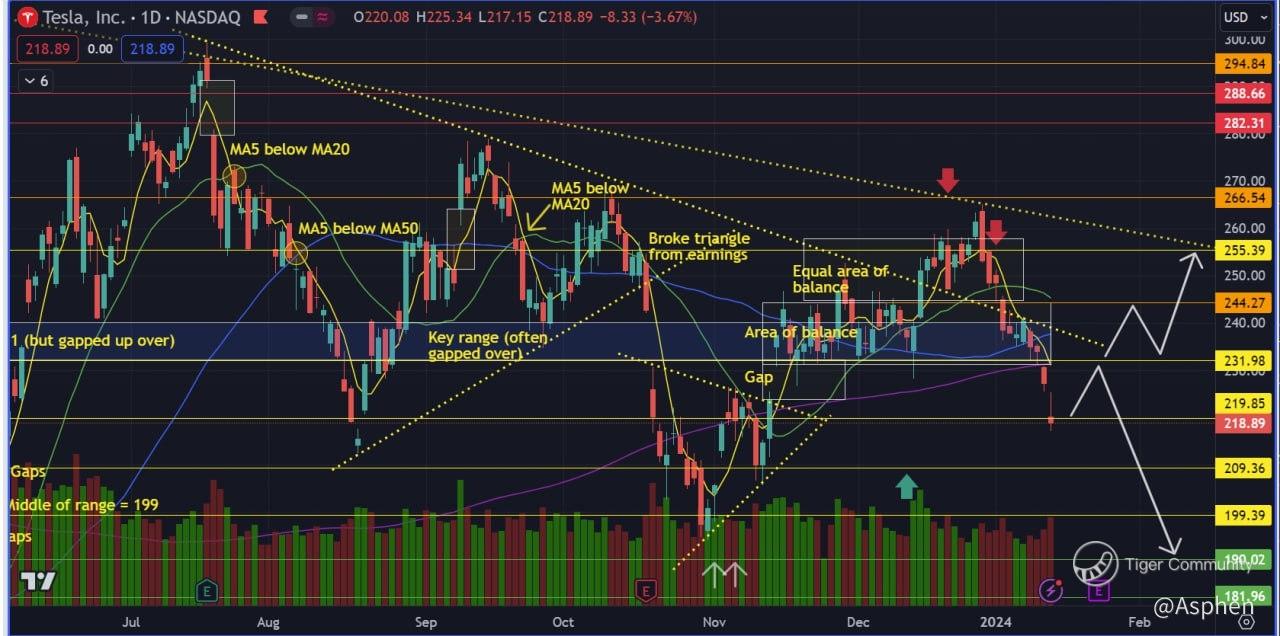 - Why my previous sharing has been repeatedly saying the key range is 232 to 240/244/255 is that TSLA has not managed to stay above and has now broken below 232