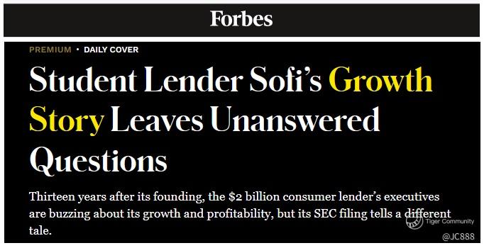 When I came across the Forbes’s post “Student Lender Sofi’s Growth Story Leaves Unanswered Questions“, I thought it would be another thought provoking read that will uncover more juicy secrets or a different viewpoint on US fintech stock $SoFi Technologies Inc.(SOFI)$.