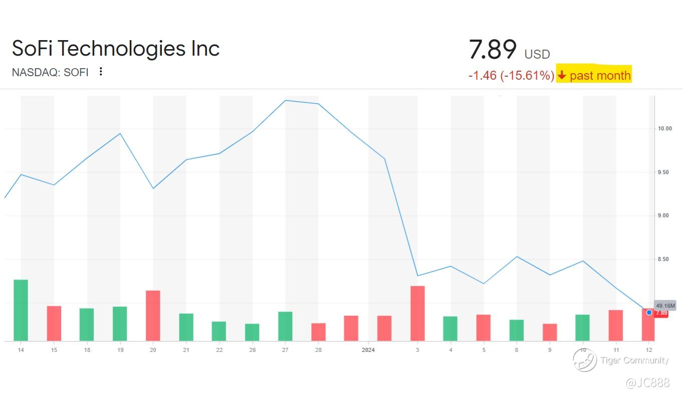 SoFi peaked on 27 Dec 2023 at $10.32 per share.