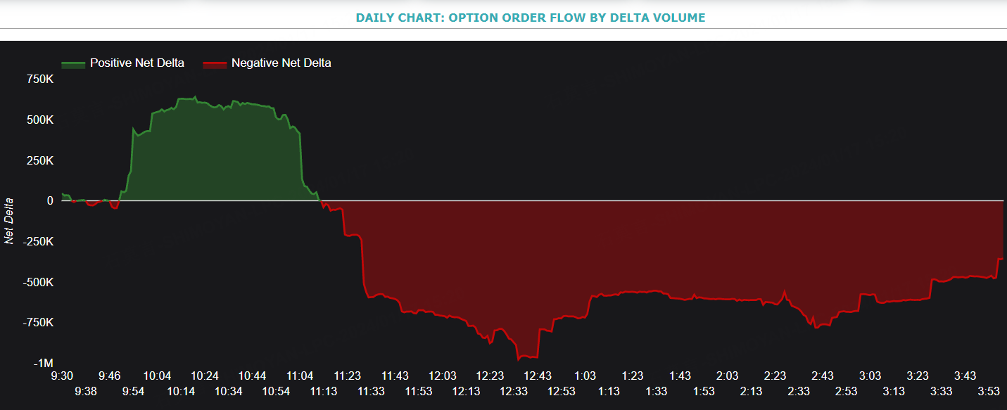 If we take the total positive option delta volume and subtract the total negative option delta volume, we will get the net imbalance. If the net imbalance is positive, there is more bullish pressure. If the net is negative, there is more bearish pressure.