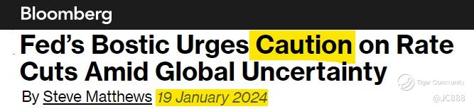 On Thu, 18 Jan 2024 at an event hosted by the Atlanta Business Chronicle, Atlanta Fed president, Raphael Bostic urged policymakers to proceed cautiously toward interest-rate cuts given the potential economic impact of unpredictable events ranging from elections at home to worldwide conflicts.