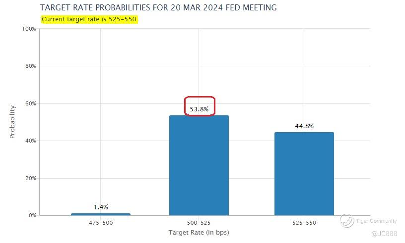 Following the speech, the CME FedWatch tool on the probability of an early March 2024 rate cut fell further to 53.8% from 61.4%. (see above)