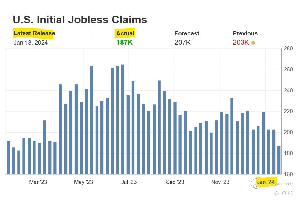 Fresh out of the oven, on Thu, 18 Jan 2024 - the US Labor Department reported that initial jobless claims hit their lowest level since September 2022, a sign that the labor market remains tight. (see above)
