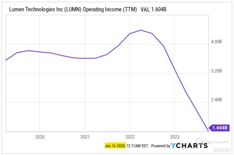 Before the slump, Lumen was a profit machine, generating >$4 Billion in operating income with a healthy 20-21% margin.