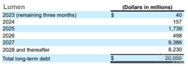 As of 30 Sep 2023, Lumen had a whopping $20 Billion hanging over its head.