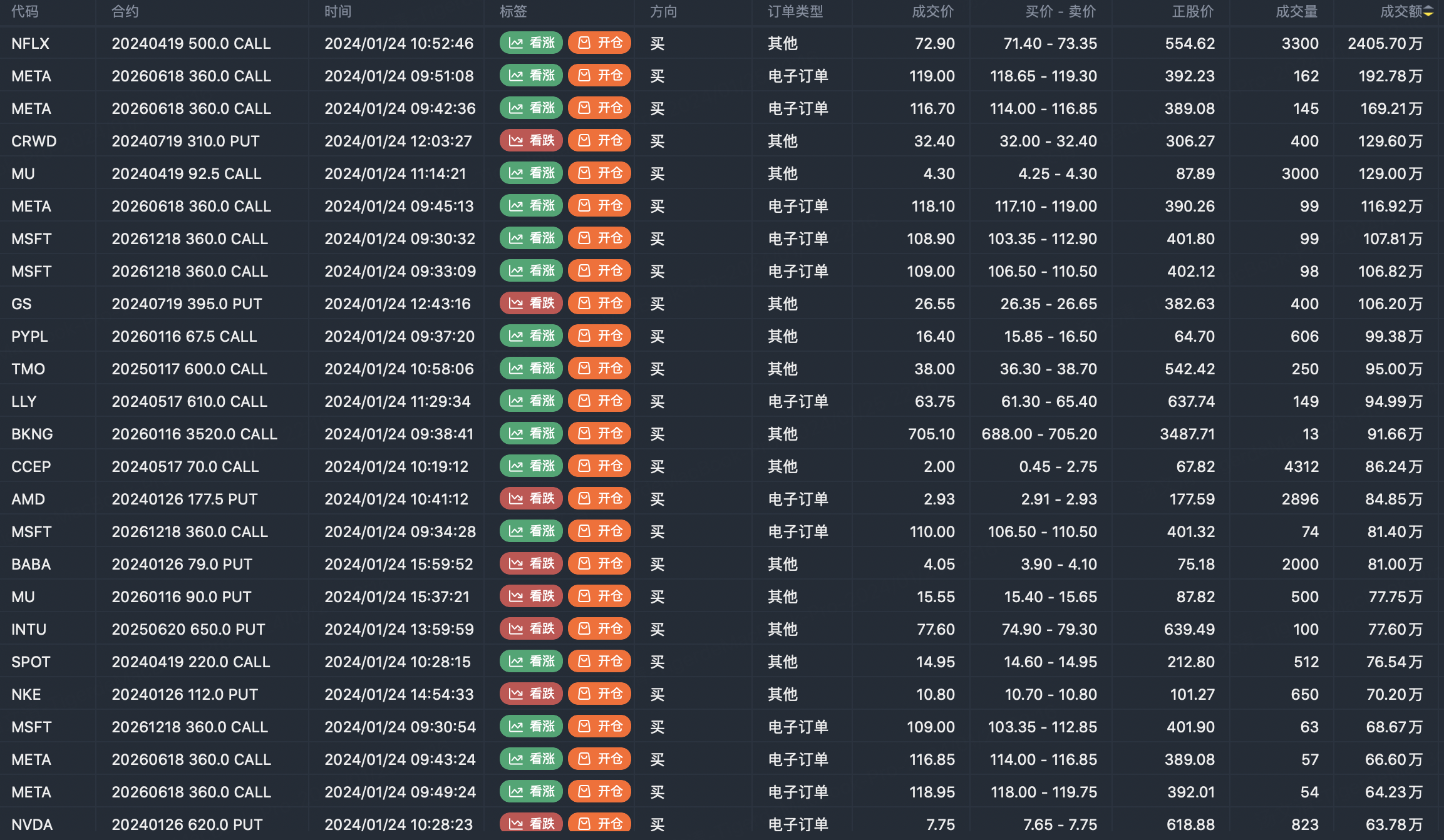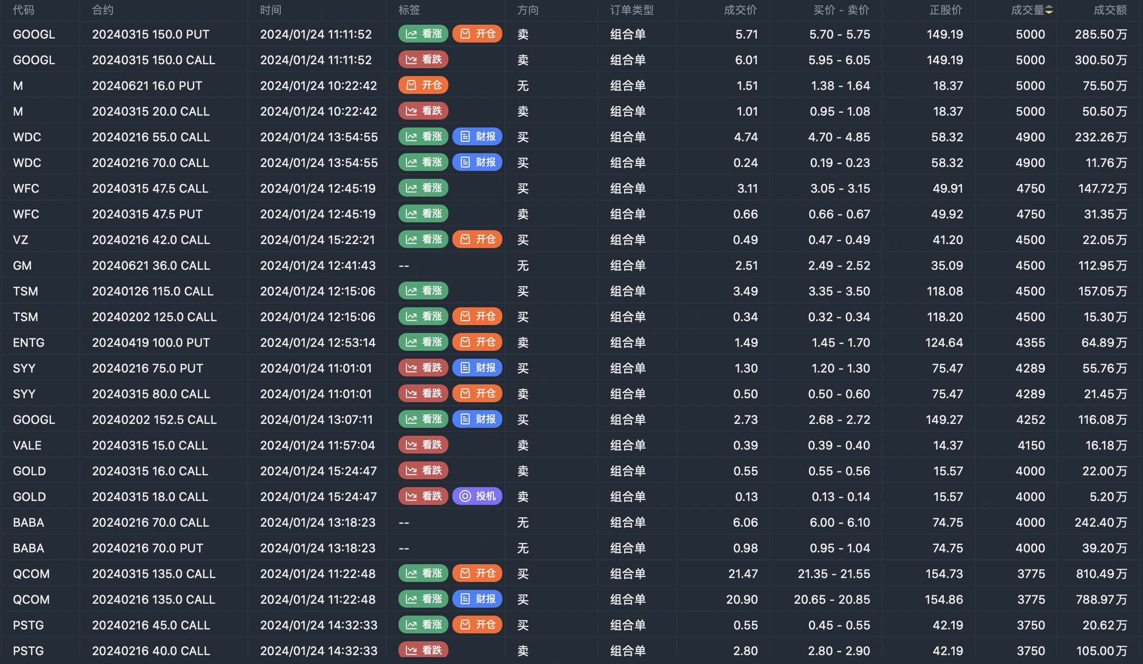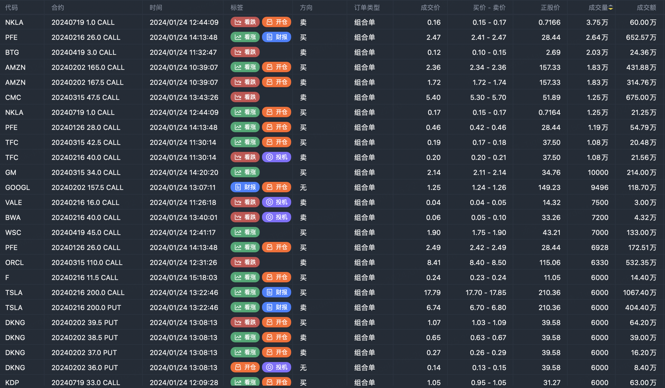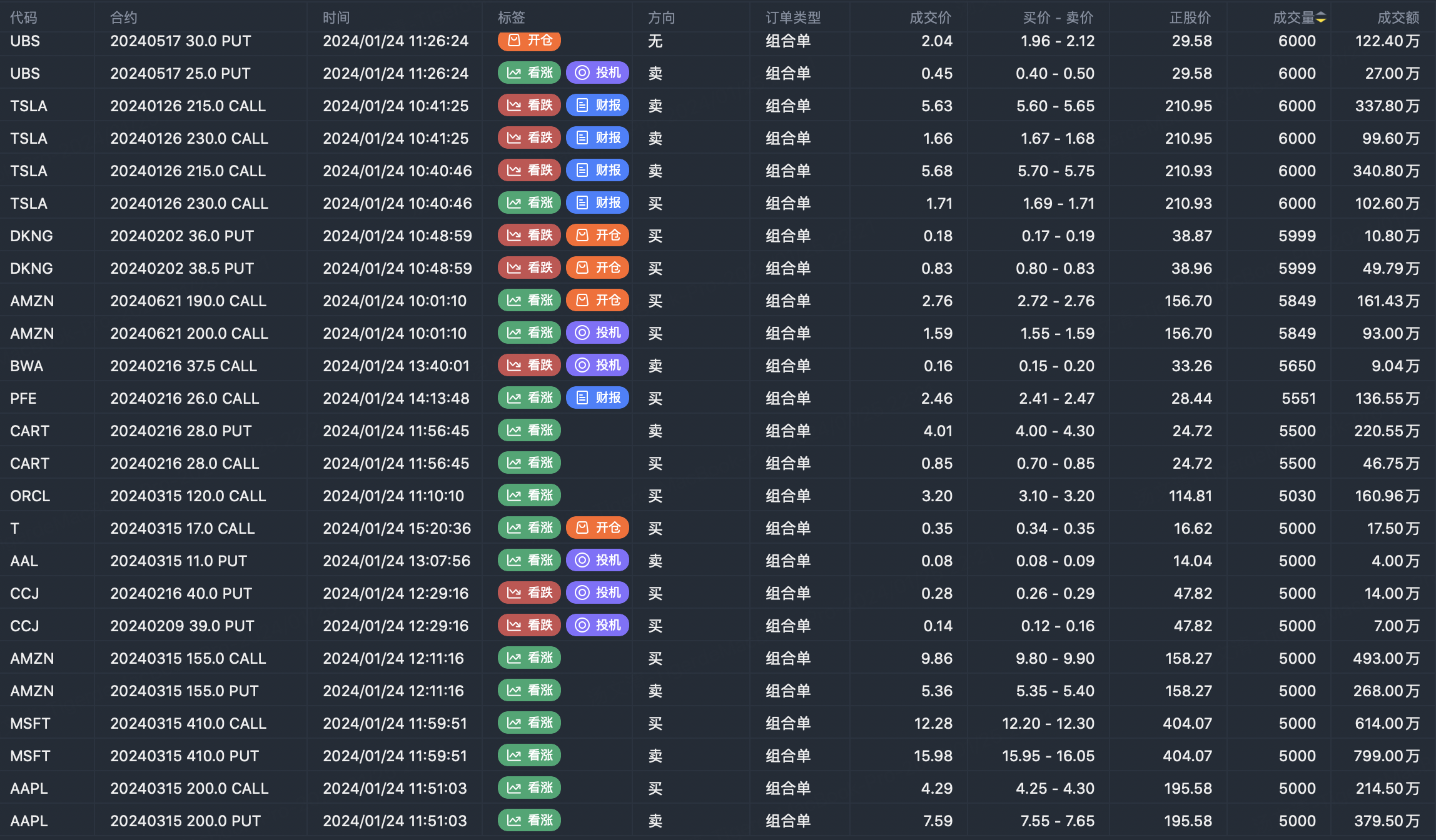 Note: This image data is from Tiger PC. This screening is a significant portfolio of options contracts in the market. Portfolio opening includes a variety of underlying trends, requiring traders to further master the basic knowledge of options for analysis and judgment.