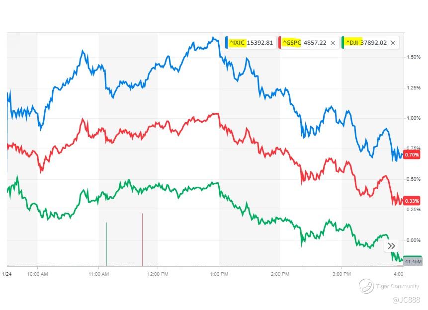 All this comes, hot on the heels of a rising $S&P 500(.SPX)$ index that is powering to set the 4th straight record high on Wed, 24 Jan 2024, after earnings-related optimism fueled by Netflix Inc. moderated and traders tempered their expectations for Tesla Inc.’s quarterly figures.