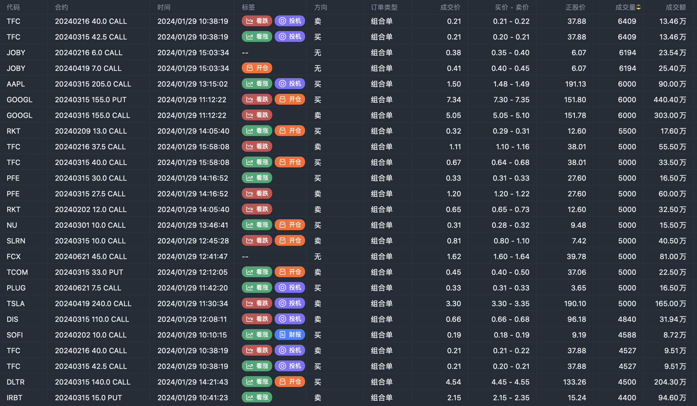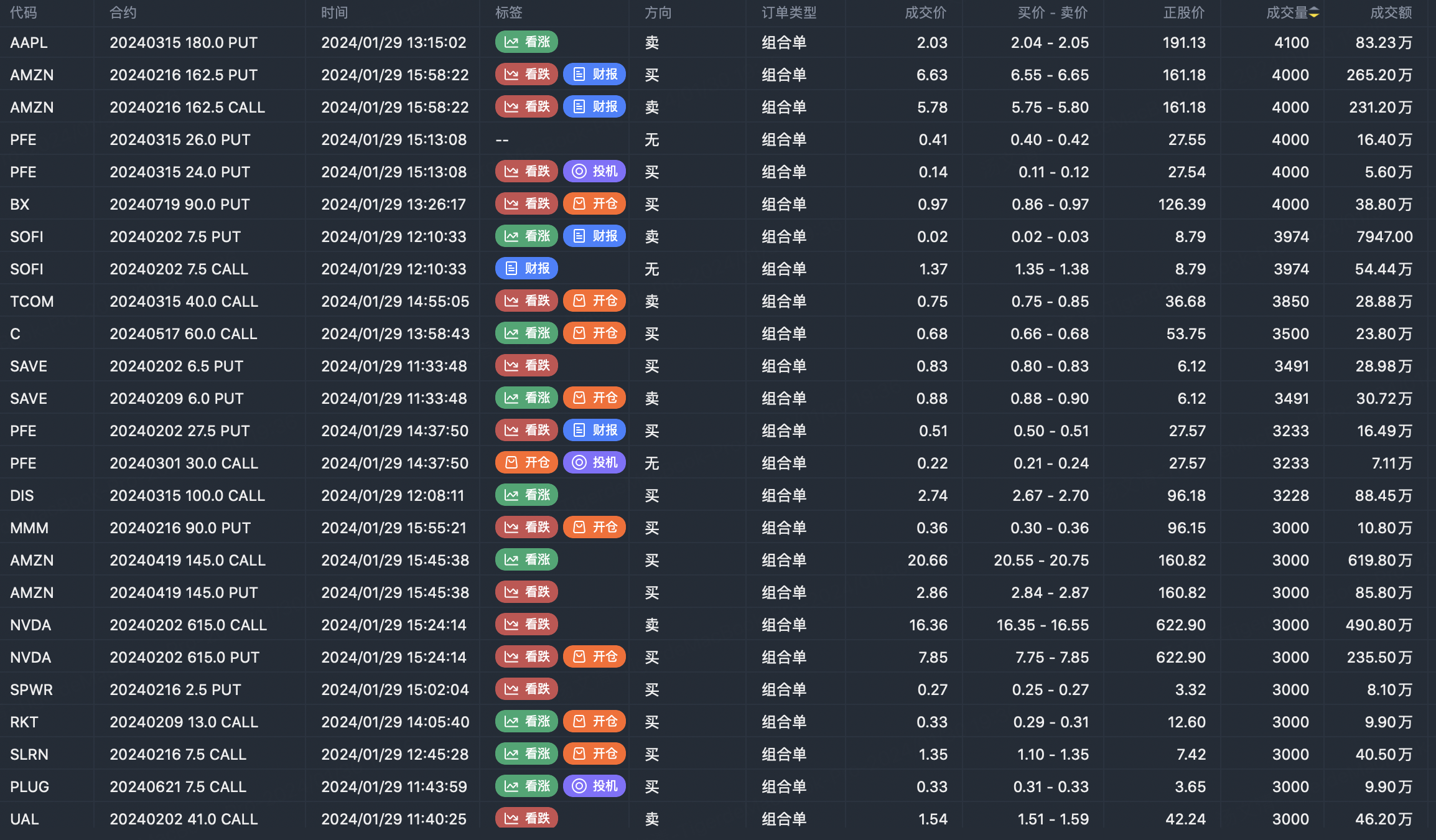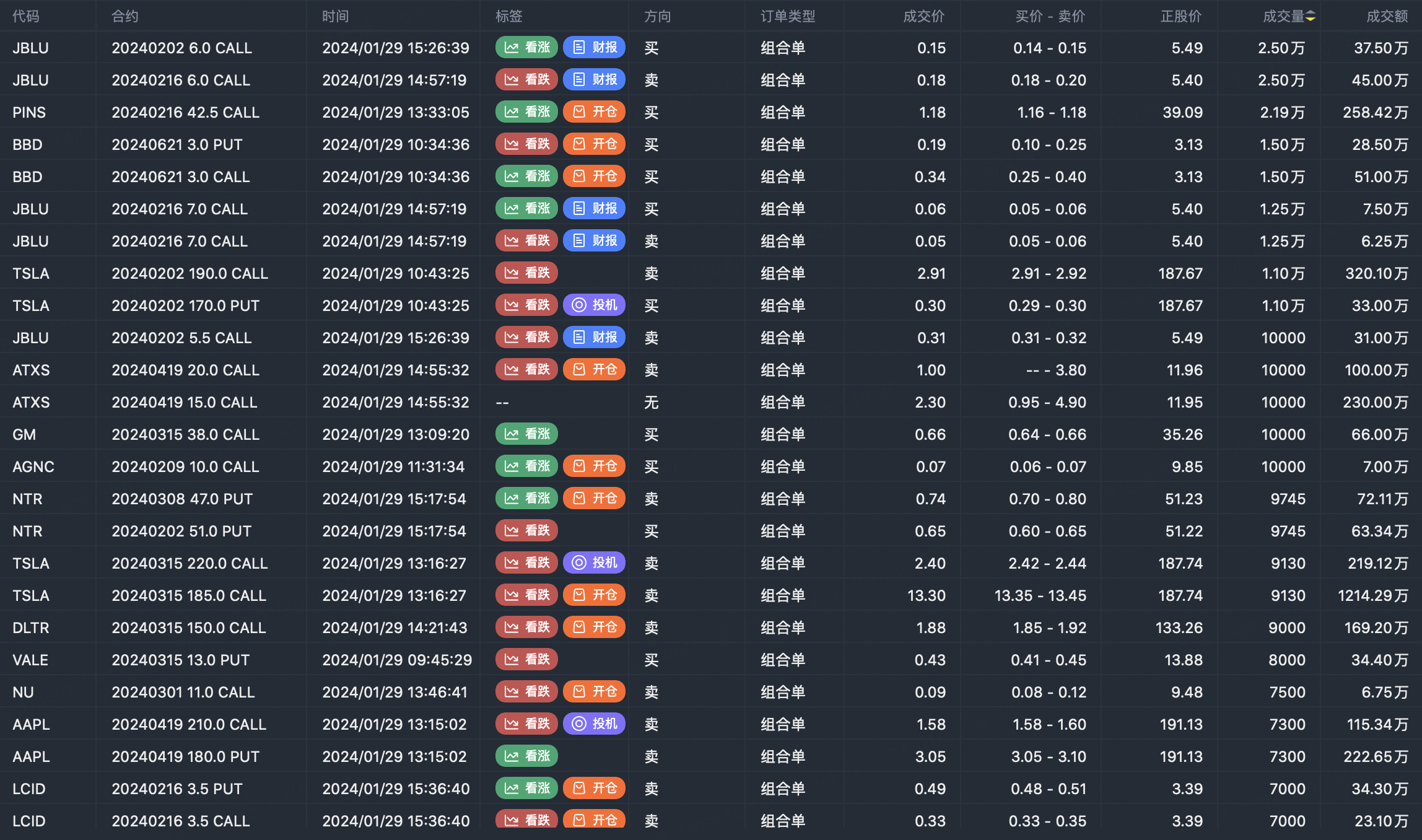 Note: This image data is from Tiger PC. This screening is a significant portfolio of options contracts in the market. Portfolio opening includes a variety of underlying trends, requiring traders to further master the basic knowledge of options for analysis and judgment.