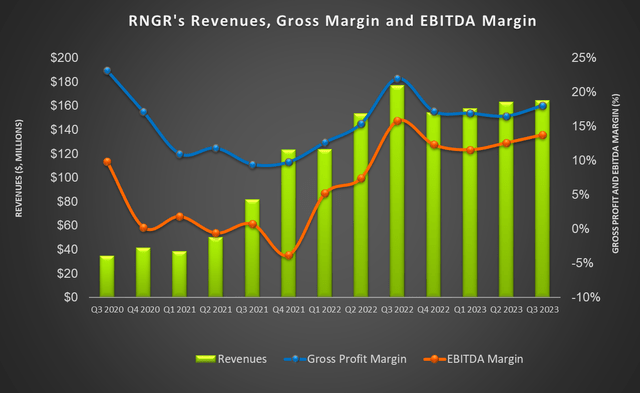 RNGR's debt-to-equity was 0.04x as of September 30, 2023 - an improvement over 0.07x since the start of 2023. Its net debt was insignificant on September 30. Its liquidity was $70 million as of that date. During Q3, it repurchased 781,000 shares for ~$0.6 million, which leaves it with nearly $26 million of authorization. It has already exceeded its commitment of 25% annual shareholder return as set earlier.