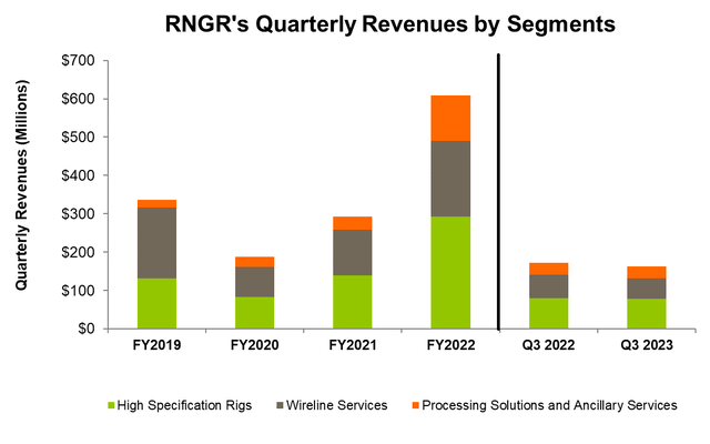 Much of RNGR's assets are allocated to production-focused work, which allows it to keep the baseline activity relatively unaffected. This, despite the fall in onshore activity in the US, is noteworthy. In Q3, it signed an agreement with a major integrated US onshore operator, which can increase its market share in this region. The company looks to position itself to cater to larger customers while consolidating vendors to gain momentum in 2024. So, the fact that its revenues from the High Specification Rigs segment remained unchanged from Q2 to Q3 showed the robustness of its production-focused business model.