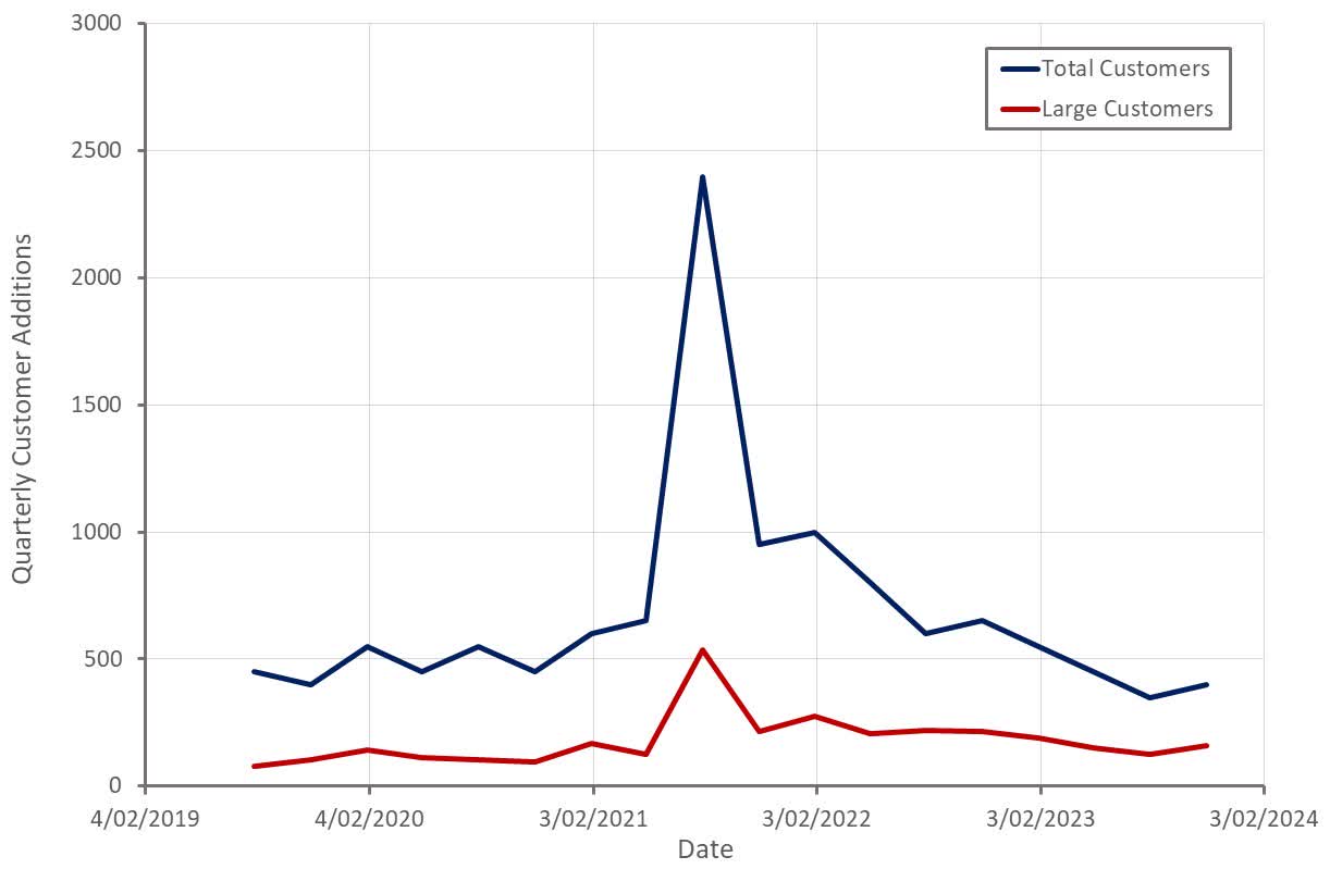 Figure 3: Okta Quarterly Net Customer Additions (source: Created by author using data from Okta)