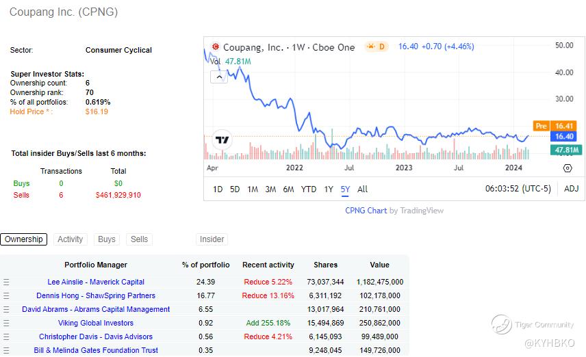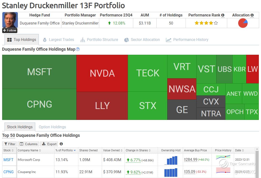 Stanley Druckenmiller’s recent 13F (14 Feb 2024) saw him adding additional shares of CPNG, making this the 2nd biggest holding in his portfolio.