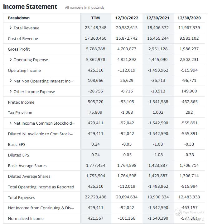 We are seeing healthy growth of revenue from $11.9B (2020) to $23.1B (TTM).