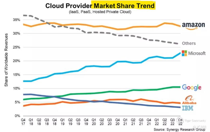 AWS market share in cloud solutions is 32%. Undisputed leader.