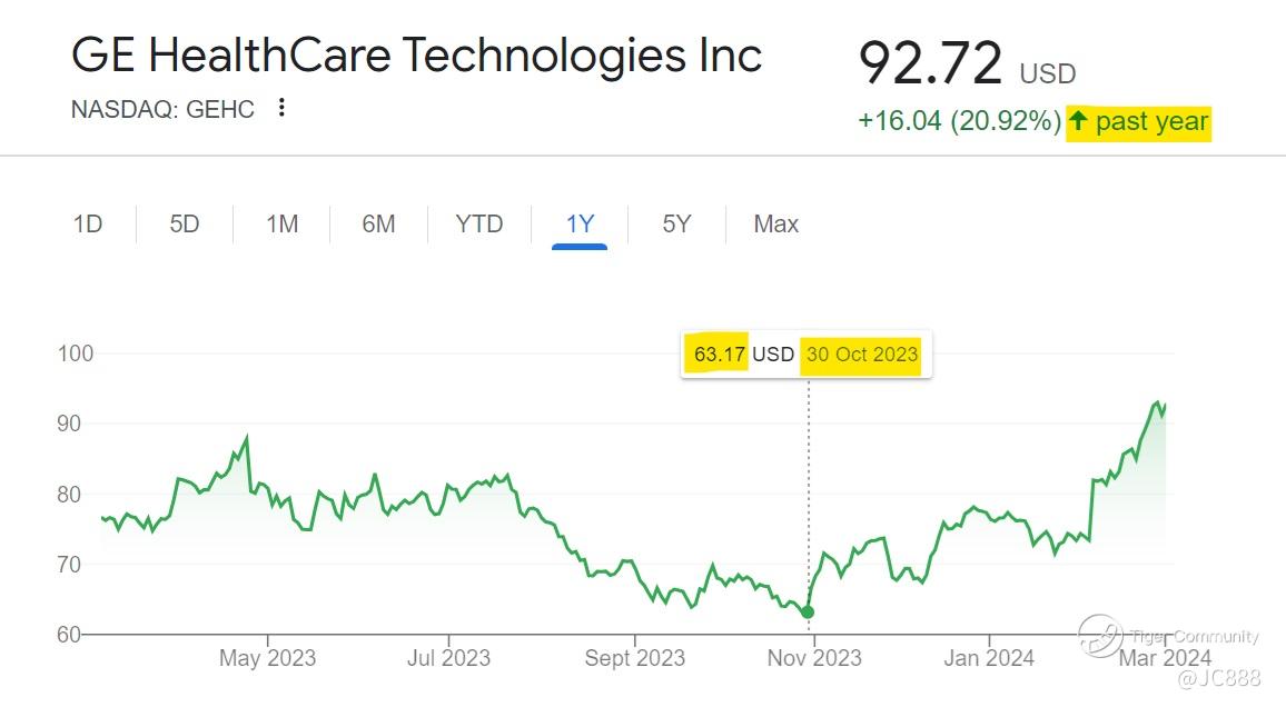 Looking at GE Healthcare past 12 months performance, it has gain +20.92% to close at $92.72 per share. (see above)
