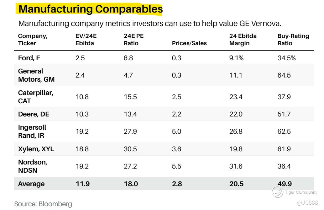Another way to value Vernova, is to look at US manufacturing companies. (see above)