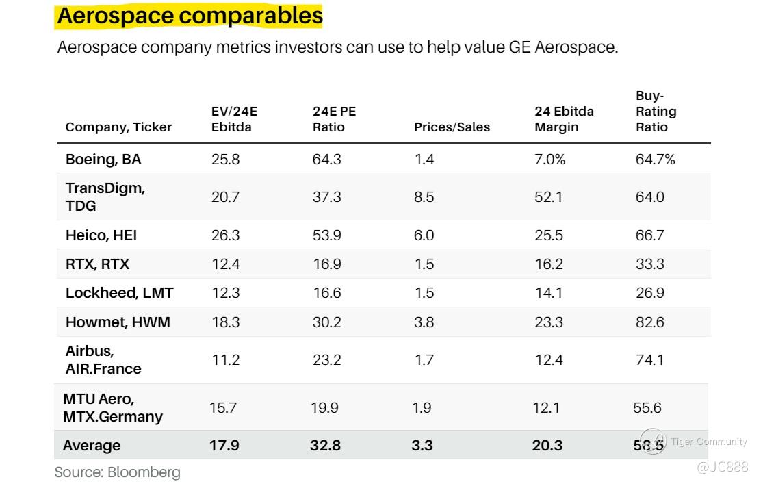 Aerospace and defense stocks (in US), trade for an average of about 18x estimated 2024 EBITDA. (see above)