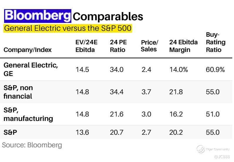 As of 01 Mar 2024, GE trades for about 14.5x estimated 2024 EBITDA, that is similar to S&P 500’s non-financial and manufacturing companies. (see above)
