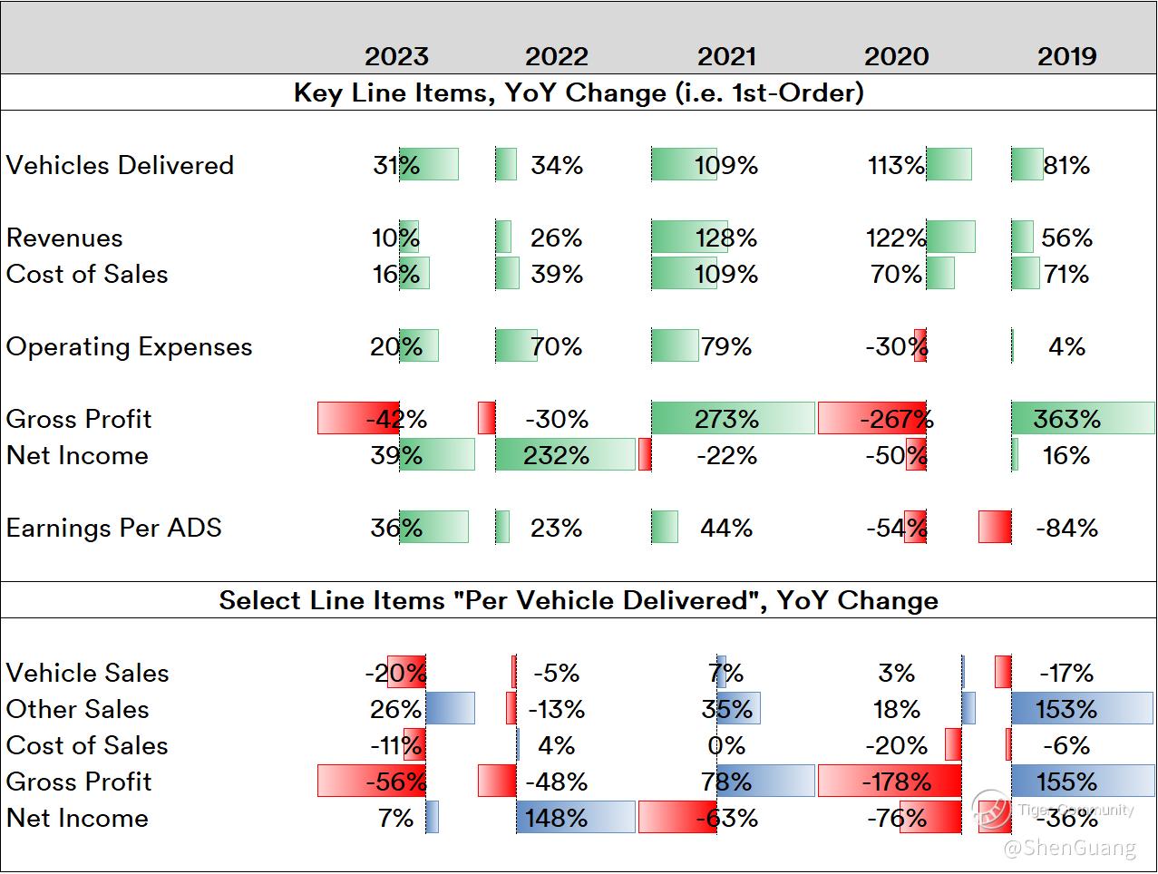 Going over vehicle sales, et al relative to vehicles delivered for that year might not be wholly meaningful for any given year since most buyers of higher-end vehicles typically wait a period of time to collect their orders after making payment. Nonetheless, overall trends are rather telling. The ratio of vehicles sales to vehicles delivered has substantially flattened from a little over $62,000 per delivery in 2018 to around $43,000 (i.e. roughly the price of an ET5, the cheapest model) in 2023, thus suggesting that buyer expectations are largely set and a relative "size of the market" is largely determinable by the company. This is also borne out by strong trends in "other sales" relative to the volume of vehicles sold. The relative downtrends in gross profit and the rising increase in net losses also suggests an increasingly-clear addressable segment, which implies that the company's battle with other carmakers (such as BYD) catering to that same segment.