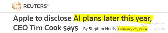 To have CEO, Tim Cook disclosed that Apple’s AI master plan will all be revealed by year end seems like a dampener. (see above)