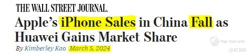 According to the press, iPhone sales fell -24% YoY in the first 6 weeks of 2024. In contrast, Huawei saw unit sales rise by +64% in the same period.