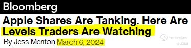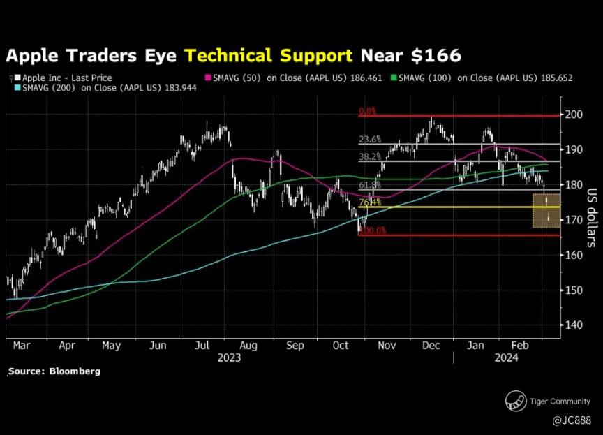 On Tue, 05 Mar 2024 — traders are eyeing $Apple(AAPL)$ after its stock slid below a critical psychological threshold, as shares entered a technical correction for the first time since August 2023 this month. (see below)