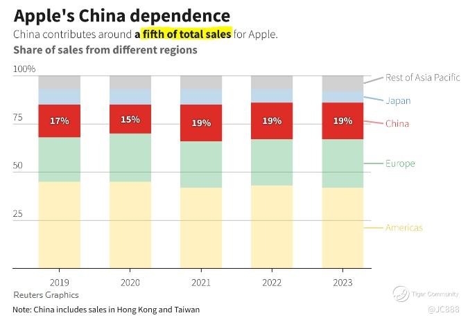 It cannot be deny that China accounts for about 20% of Apple’s sales total. (see above)