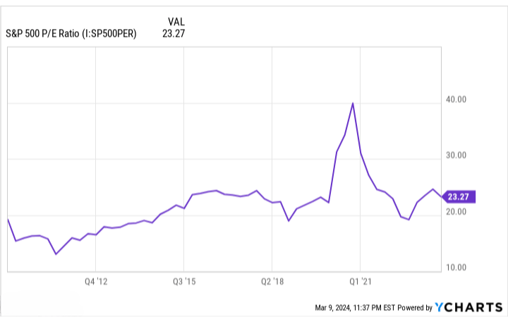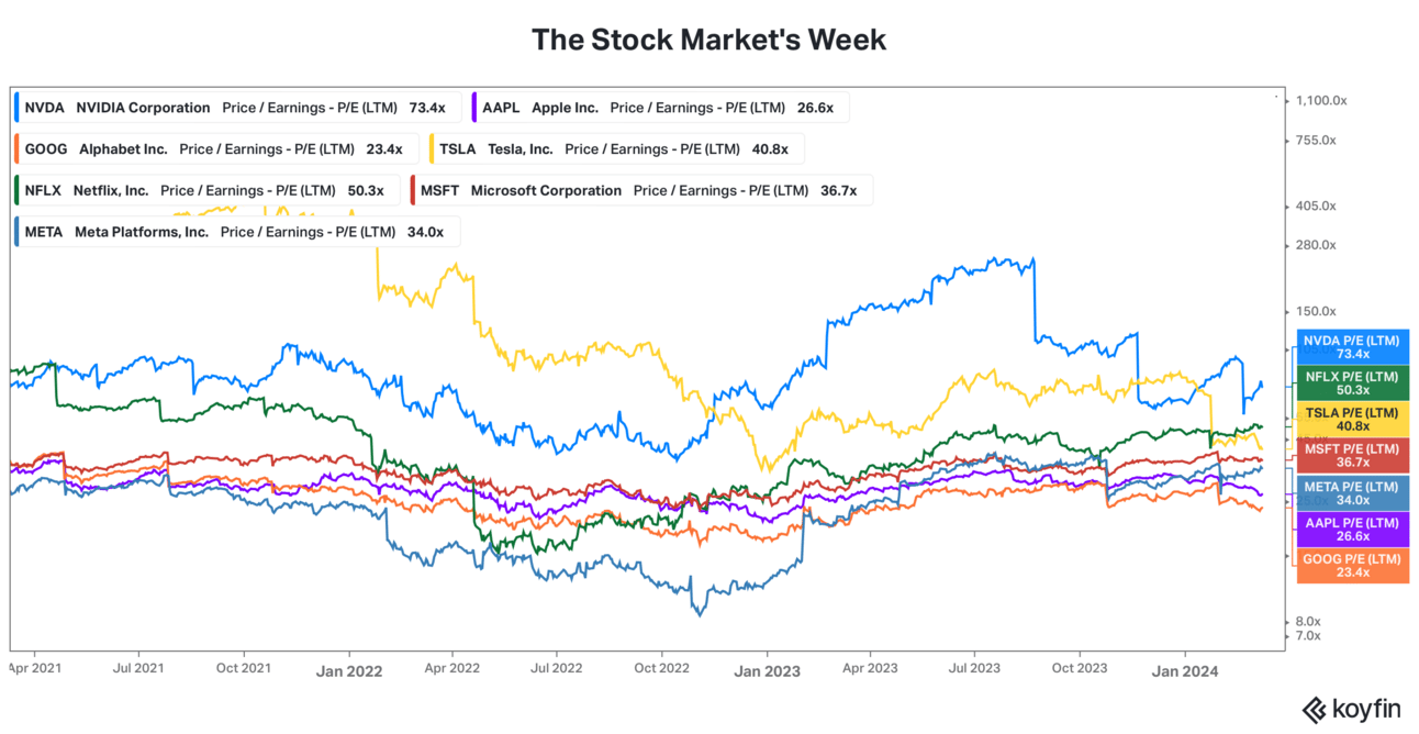 The Magnificent 7, which drove the market in 2023, is also trading for historically high multiples. Only $Alphabet(GOOG)$ $Alphabet(GOOGL)$ and $Apple(AAPL)$ trade for a P/E ratio under 30x and they’re not cheap at 26.6x and 23.4x respectively.