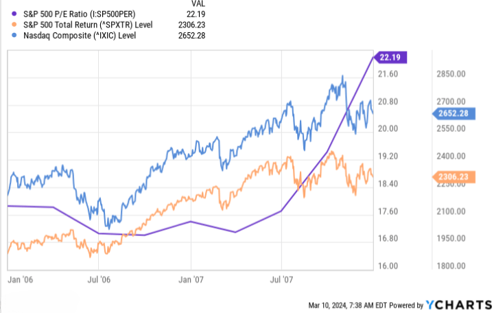 The S&P 500 traded for a 22.2 P/E ratio to start in 2008 before the market collapsed.