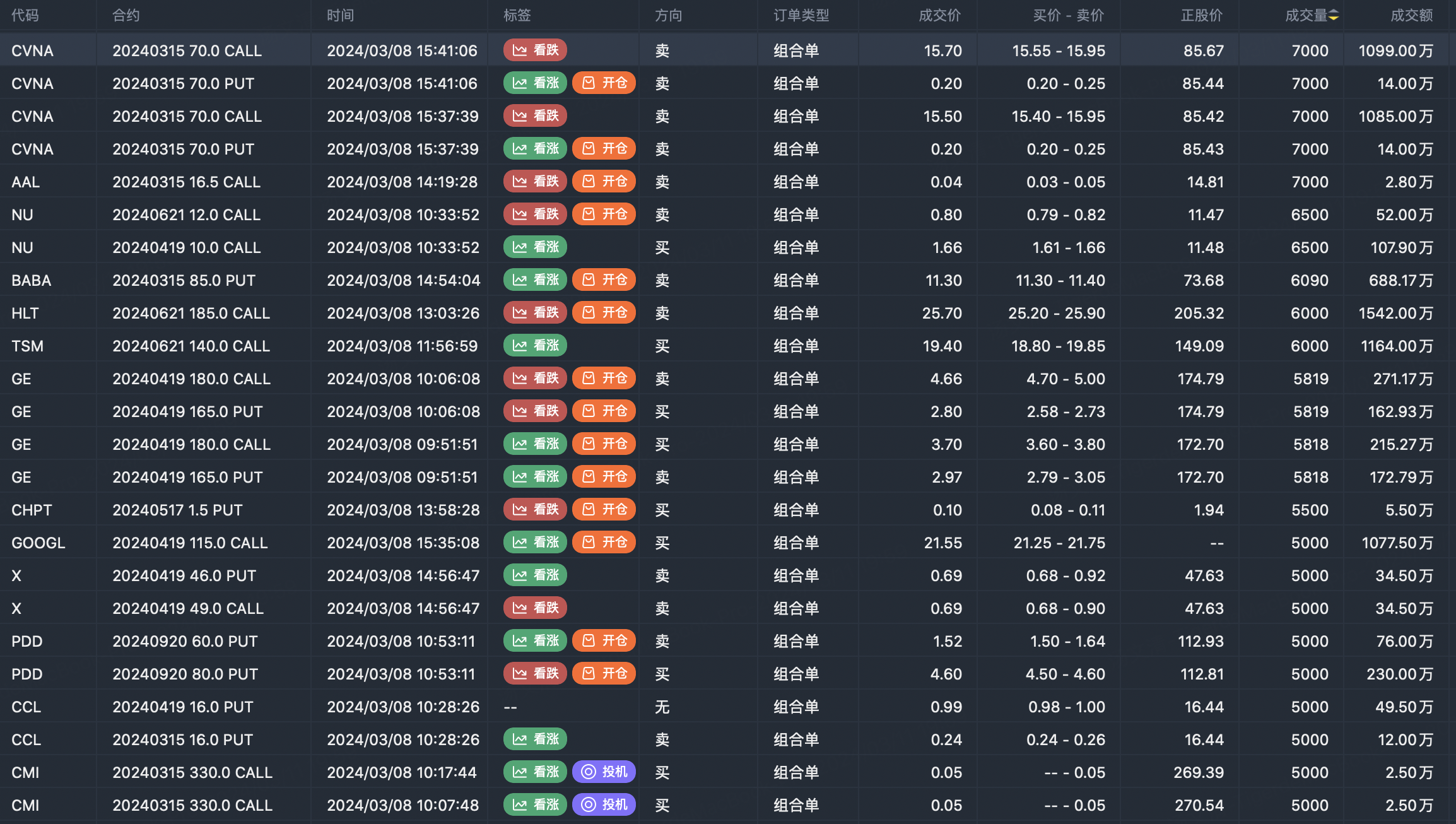 Note: This image data is from Tiger PC. This screening is a significant portfolio of options contracts in the market. Portfolio opening includes a variety of underlying trends, requiring traders to further master the basic knowledge of options for analysis and judgment.