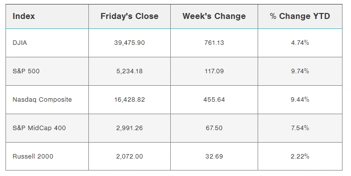 • Stocks rise as Fed sends dovish signals,Stocks moved higher this week, pushing the S&P 500 and Nasdaq Composite to new highs as investors cheered news that Federal Reserve policymakers still expect three rate cuts later this year.