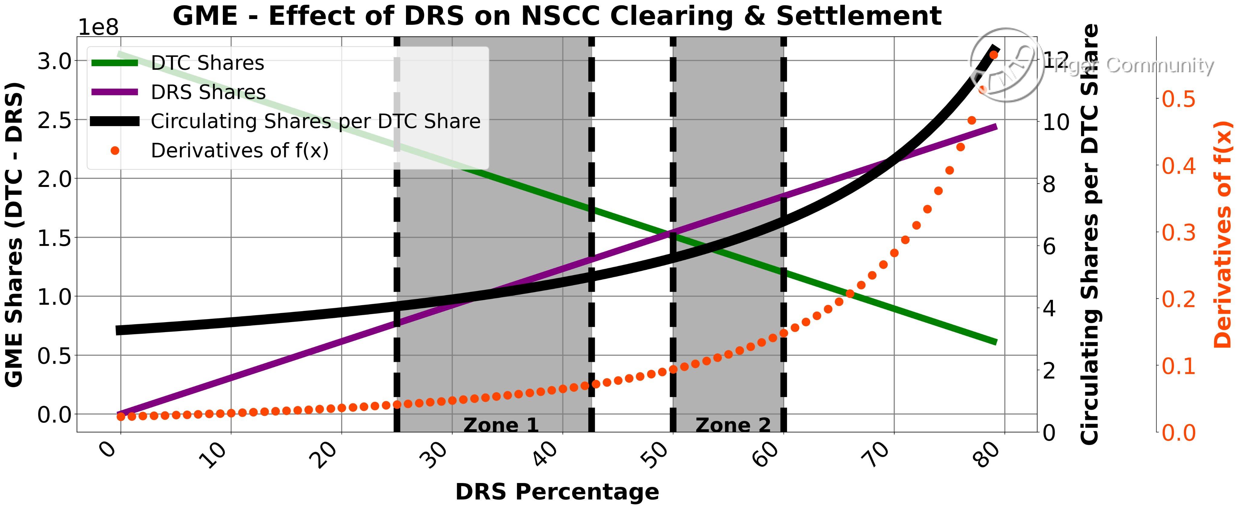 **The derivatives curve is the same regardless of the actual number of shares in circulation.