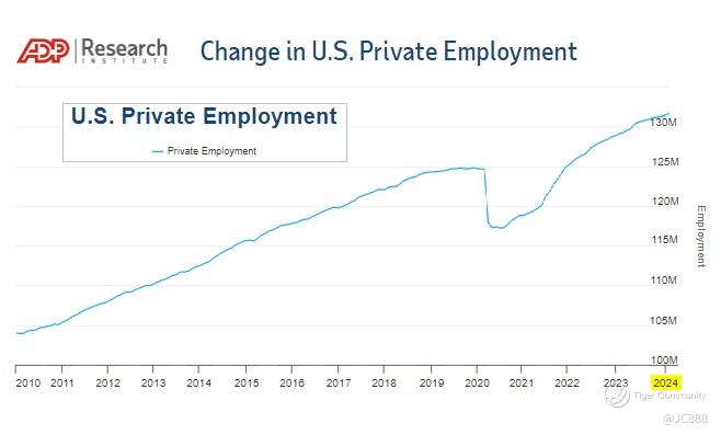 Hiring in the private sector increased more than expected for March 2024. (see above)