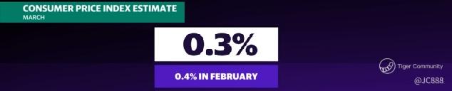 • CPI (MoM) - 0.3% (see above) vs Feb’s 0.4%.
