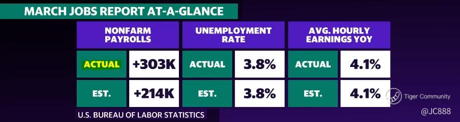 • Actual jobs creation (303,000) outpaced market estimates (214,000) by +41.59%.