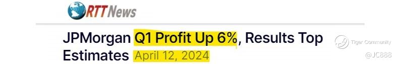 For starters, let’s look at US banks quarterly earnings just announced on Fri, 13 Apr 2024: